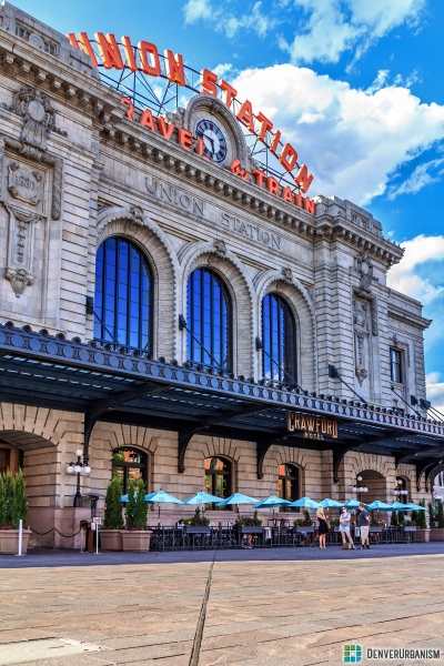 The 105th Meridian West cuts across Wynkoop Plaza and Denver Union Station.